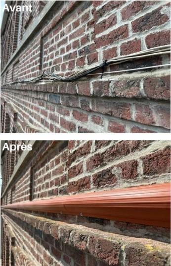 Maisons individuelles et pavillons : Les propriétaires de maisons individuelles sont de plus en plus nombreux à faire appel à nous pour masquer les câbles fibre ou télécoms sur leur façade.
