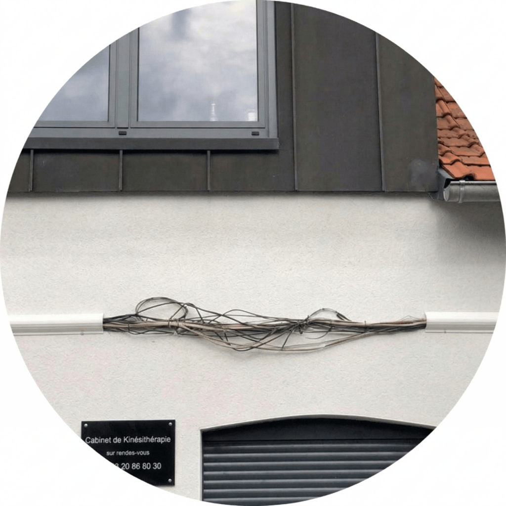 Esthétique et intégration architecturale : Les fils noirs ou blancs qui traversent une façade historique ou un crépi neuf créent une forte pollution visuelle.